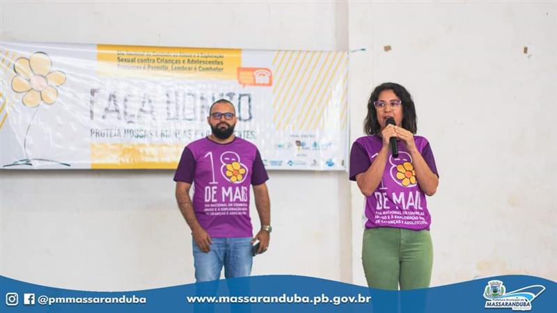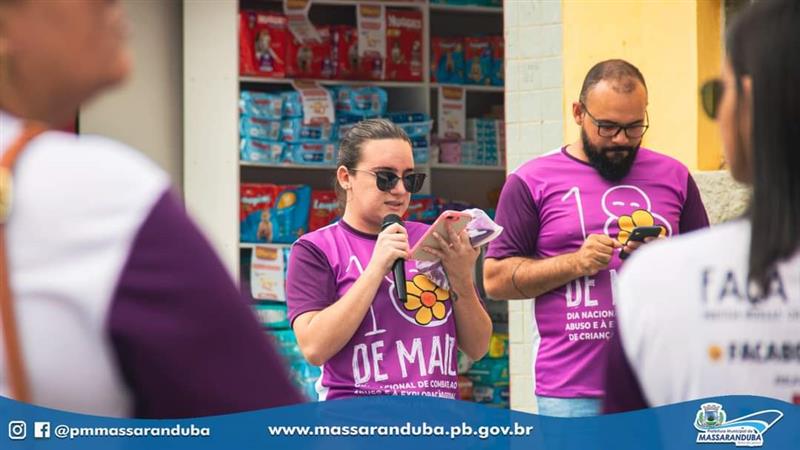 Com o apoio dos órgãos de proteção e secretarias parceiras, através da Secretaria de Assistência Social, a Prefeitura de Massaranduba realizou ações em nosso município com o intuito de sensibilizar e informar sobre situações de violências e os locais onde se pode fazer as denúncias. Nesta quinta-feira, 18, a "Caminhada Faça Bonito" coloriu as principais ruas da cidade e com apresentações teatrais, músicas, panfletagem e adesivagem, buscou mobilizar, concientizar e chamar a atenção da população para o tema, com a participação de estudantes, autoridades, servidores municipais, e de populares. A Delegada Nercilia Dantas participou da mobilização e em sua fala, alertou para os diferentes tipos de crimes cometidos contra crianças e adolescentes. Nesta sexta-feira, 19, será a vez do distrito Santa Terezinha, a partir das 08h.
