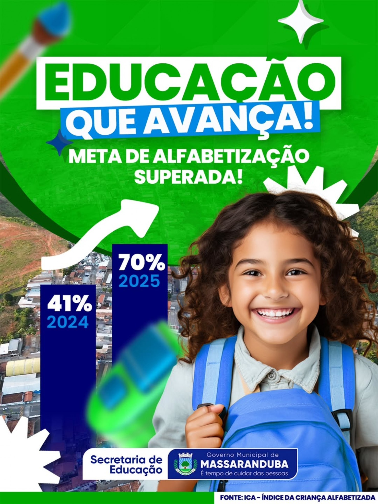 histórico na educação, o município alcançou 70% de alunos alfabetizados,