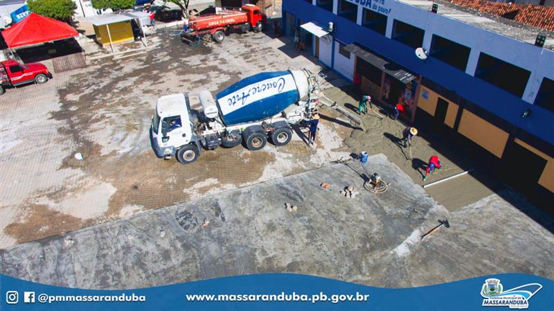 A obra de concretagem e polimento do piso do pátio receberá mais de 280 metros cubicos de concreto em pouco mais de 2.300 metros quadrados. Além da construção do novo piso e a manutenção da rede de esgoto da área, a Prefeitura prepara a entrega da nova sede da Secretaria de Cultura, Comunicação e Esportes, construída no local, com o suporte de um depósito e uma sala destinada a Banda Fanmassa (Fanfarra Municipal).