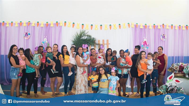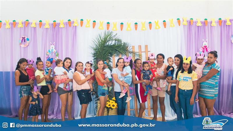 Pais e crianças inscritas no Programa Criança Feliz, participaram na última terça-feira, 04, das festividades alusivas à Páscoa, promovidas pela Secretaria Municipal de Assistência Social. O evento aconteceu na sede do Centro de Referência da Assistência Social (CRAS).