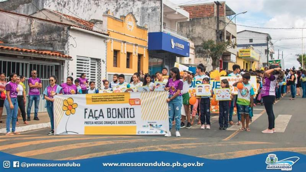 Com o apoio dos órgãos de proteção e secretarias parceiras, através da Secretaria de Assistência Social, a Prefeitura de Massaranduba realizou ações em nosso município com o intuito de sensibilizar e informar sobre situações de violências e os locais onde se pode fazer as denúncias. Nesta quinta-feira, 18, a "Caminhada Faça Bonito" coloriu as principais ruas da cidade e com apresentações teatrais, músicas, panfletagem e adesivagem, buscou mobilizar, concientizar e chamar a atenção da população para o tema, com a participação de estudantes, autoridades, servidores municipais, e de populares. A Delegada Nercilia Dantas participou da mobilização e em sua fala, alertou para os diferentes tipos de crimes cometidos contra crianças e adolescentes. Nesta sexta-feira, 19, será a vez do distrito Santa Terezinha, a partir das 08h.