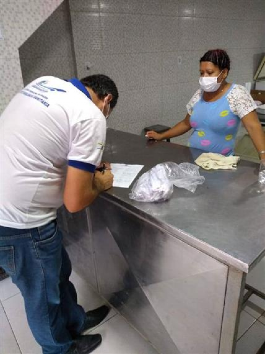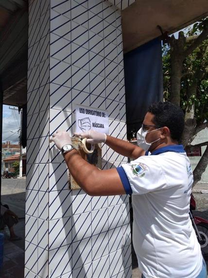 Durante esta quinta-feira (30), agentes da Vigilância Sanitária estiveram visitando os estabelecimentos comerciais informando sobre a nova medida tomada pela Secretaria Municipal de Saúde sobre o uso obrigatório de máscaras nos estabelecimentos e na feira livre, a partir deste sábado. Além do diálogo com os comerciantes, foram entregues kits de máscaras reutilizáveis para uso de funcionários, e cartazes foram fixados com informações sobre a nova medida.