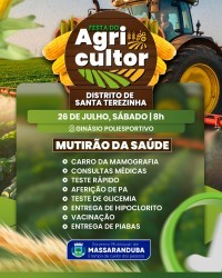 A Festa do Agricultor do distrito de Santa Terezinha acontecerá sábado (26) no Ginásio Poliesportivo Municipal e contará com uma programação diversificada voltada para toda a comunidade. As atividades terão início a partir das 8h, com um mutirão de atendimentos e serviços nas áreas de Agricultura, Saúde e Assistência Social. Às 13h, será realizada a Feira do Artesanato, valorizando o artesanato local e incentivando a economia na região e encerrando a programação, a partir das 20h, o público poderá aproveitar uma noite de muito forró em frente ao ginásio, com shows das bandas Nattan Vinícius e Tempero Completo.