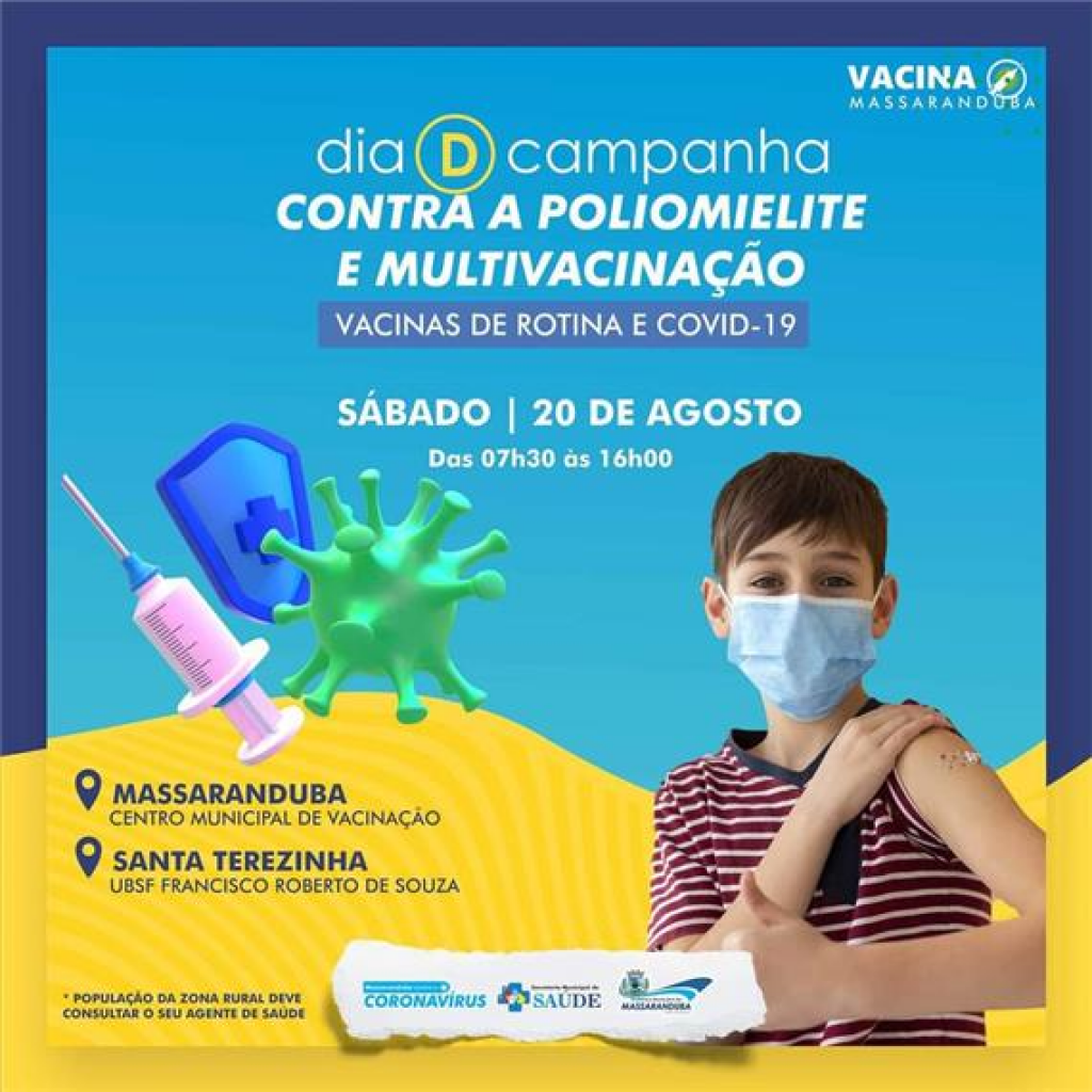 Acontece neste sábado, 20, o Dia D da Campanha de Vacinação Contra a Poliomielite e Multivacinação, em Massaranduba e no distrito Santa Terezinha, com a disponibilidade de vacinas contra a Poliomielite e outras doenças.