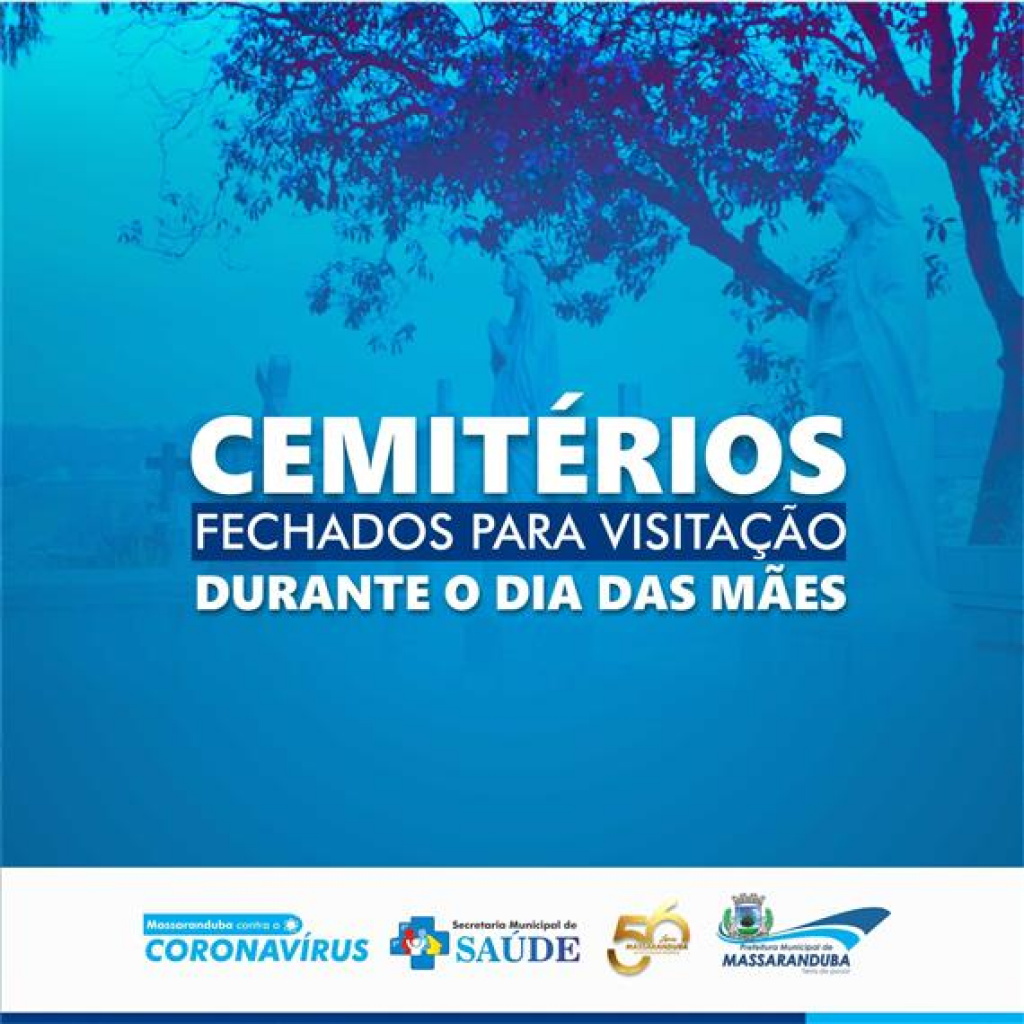 A Prefeitura de Massaranduba, através das secretarias de Saúde e de Infraestrutura, junto à Vigilância Sanitária, vem a público informar a toda população, que em virtude do momento de Emergência em Saúde Pública vivenciado em todo o Mundo e principalmente em nosso município, devido a pandemia ocasionada pelo Covid-19, estará mantendo os cemitérios municipais fechados para visitação durante este domingo, 09 de Maio, Dia das Mães.