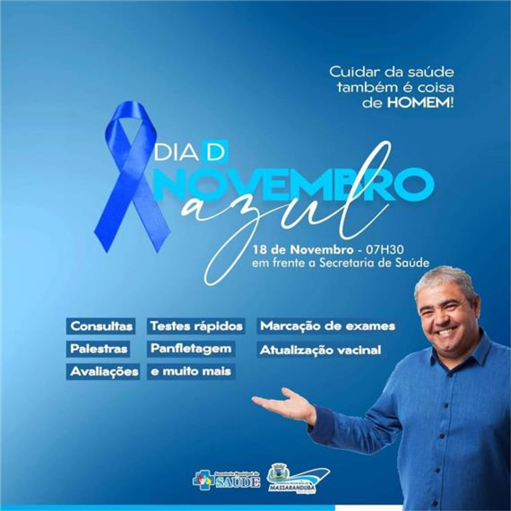 No mês de combate ao câncer de próstata, a Prefeitura de Massaranduba, através da Secretaria Municipal de Saúde, promove nesta sexta-feira, 18, o "Dia D Novembro Azul". Diversas ações que são ofertadas pelo município diariamente, estarão disponíveis em um único lugar, com palestras, panfletagens, marcação de exames, testes rápidos, avaliações, atualização vacinal e muito mais, em um espaço montado em frente a Secretaria de Saúde, na rua João Soares da Luz, a partir das 07h30.