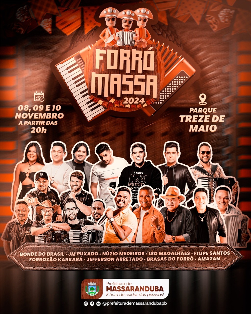 Nos próximos dia 08, 09 e 10 de Novembro, a Prefeitura Municipal de Massaranduba realizará mais uma edição do Forró Massa. O evento acontecerá no Parque Treze de maio e contará com uma grande estrutura.
