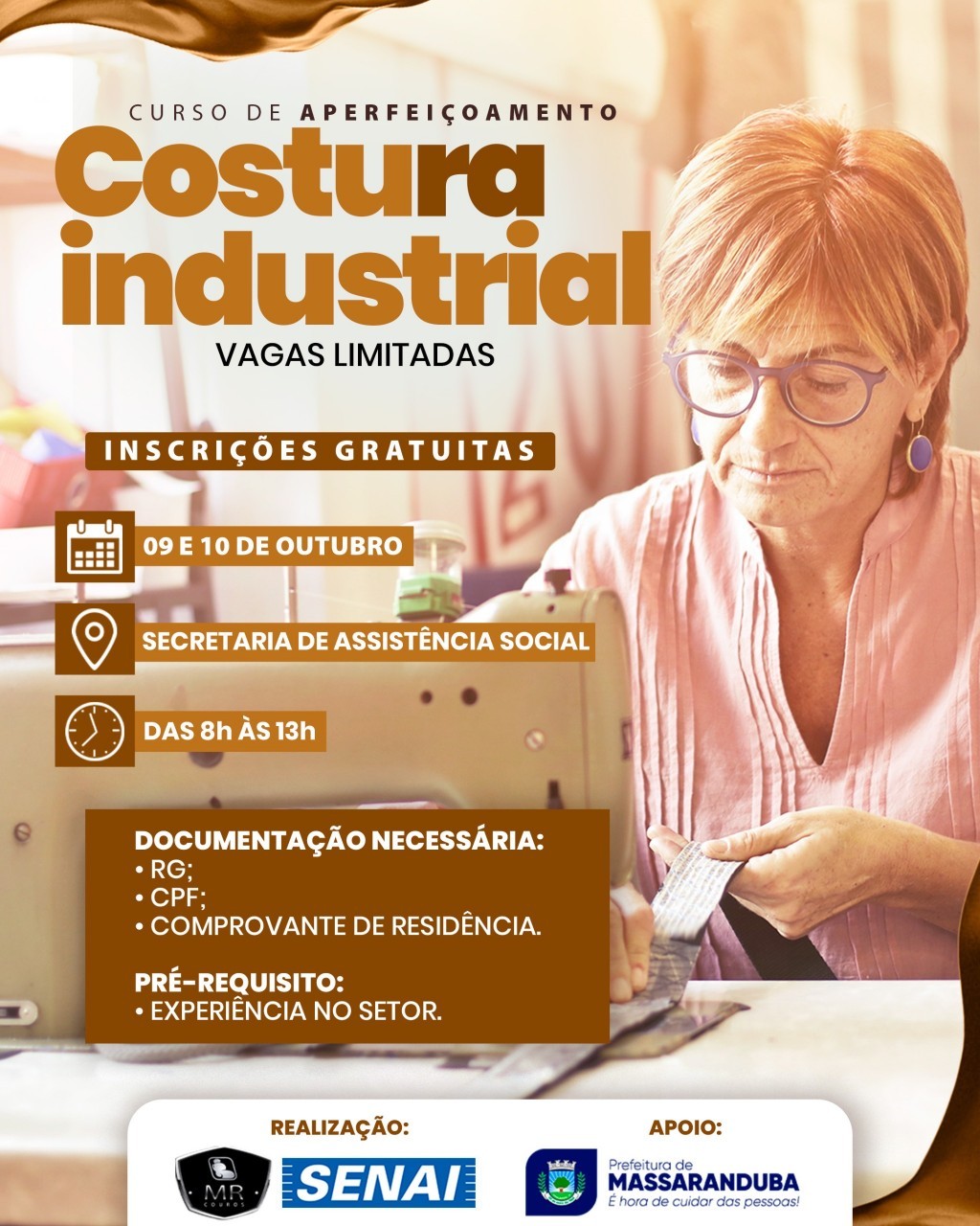 As inscrições para o curso de aperfeiçoamento em costura industrial estão abertas e são totalmente gratuitas.