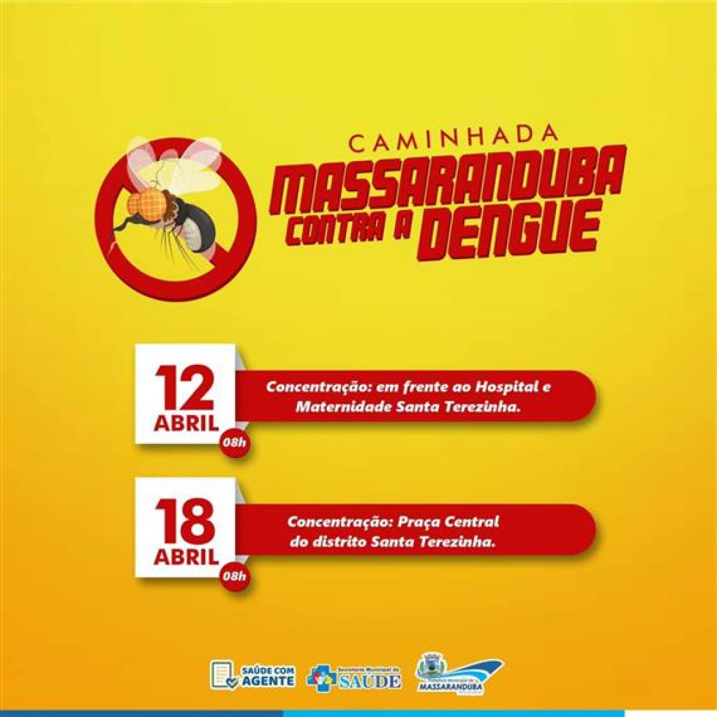 A caminhada faz parte da campanha de combate ao transmissor da dengue, da chikungunya, da zika e da febre amarela urbana, e acontece em parceria com o programa “Saúde com Agente”, com concentração às 08h em frente ao Hospital e Maternidade Municipal Santa Terezinha, com destino ao ginásio O Ribeirão.