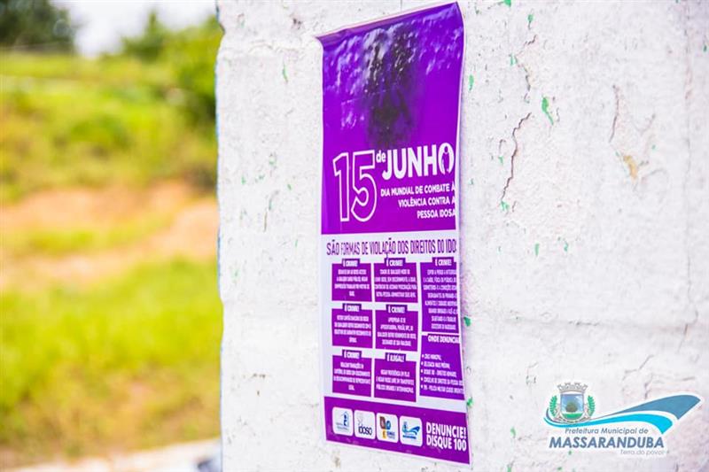 Em Massaranduba, durante esta terça-feira, 15, agentes da Secretaria Municipal de Assistência Social através do Centro de Referência da Assistência Social - CRAS, em parceria com o Conselho dos Direitos do Idoso e da Pastoral da Pessoa Idosa, realizou ações publicitárias em Massaranduba e no distrito Santa Terezinha, com o objetivo de publicizar sobre a temática através de panfletagem, fixação de cartazes e faixas, além do uso de carro de som.