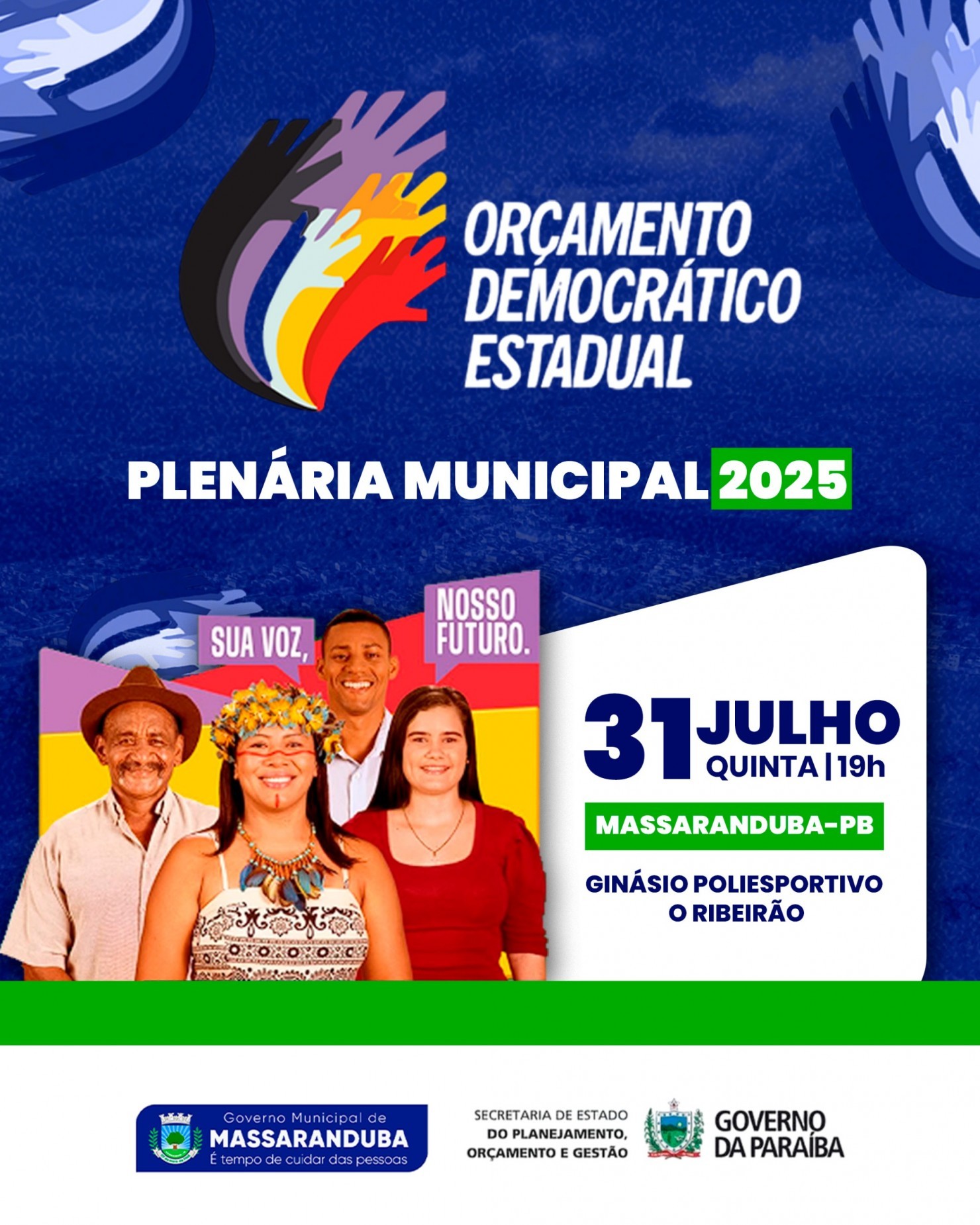 Na próxima quinta-feira, dia 31 de julho de 2025, será realizada a plenária preparatória para o Orçamento Democrático Estadual, promovido pelo Governo da Paraíba. O encontro acontecerá às 19h, no Ginásio 'O Ribeirão'. A assembleia tem como objetivo discutir e organizar as demandas prioritárias da população, que serão apresentadas nas plenárias oficiais do Orçamento Democrático. A participação popular é fundamental para garantir que as decisões sobre os investimentos públicos reflitam as reais necessidades da comunidade. O evento será aberto ao público e representa uma oportunidade para que os cidadãos contribuam ativamente com o planejamento das ações do Governo Estadual.