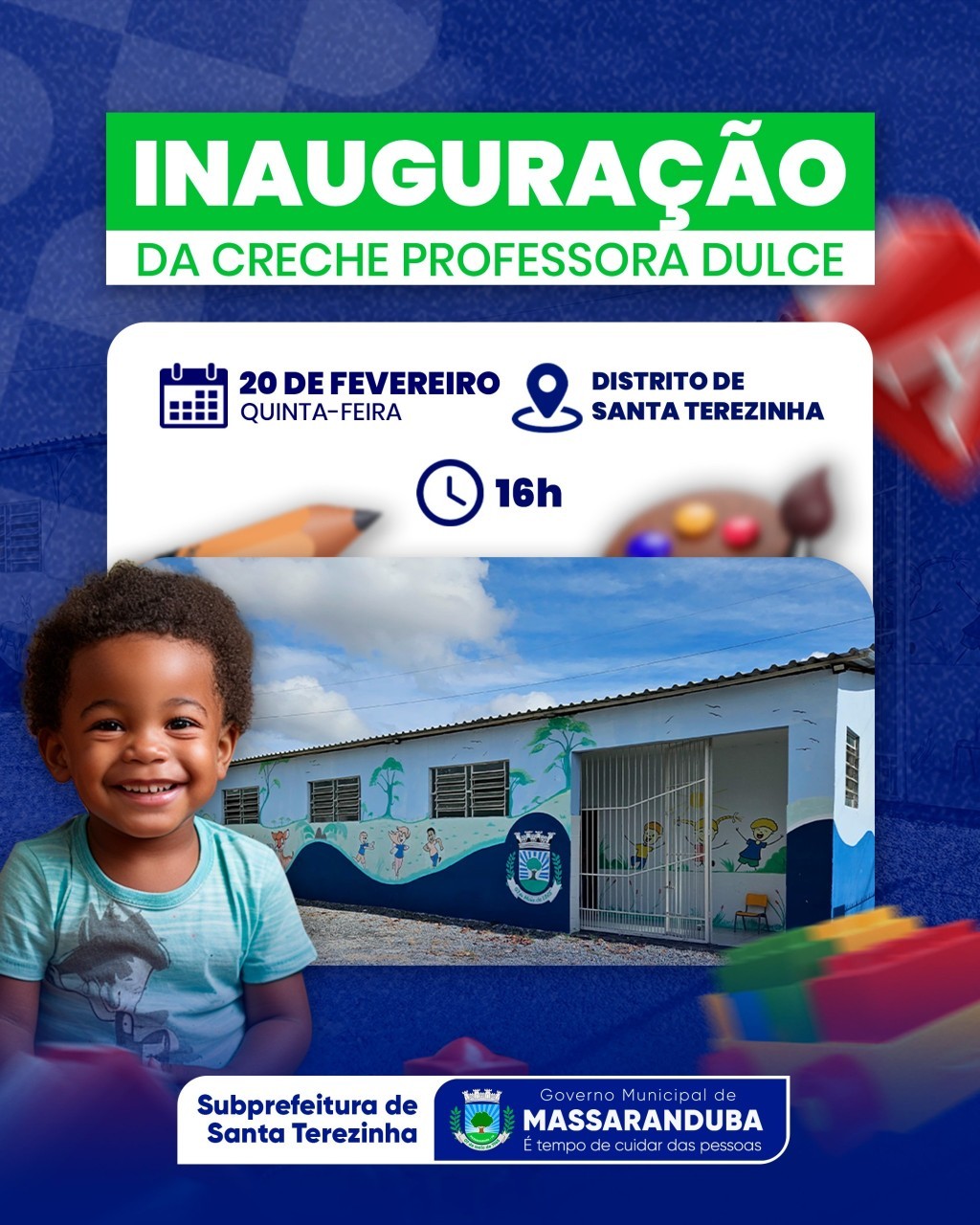 Na próxima quinta-feira (20), será realizada a inauguração da nova Creche Municipal Professora Dulce, localizada no Distrito de Santa Terezinha. A cerimônia acontecerá a partir das 16h e marcará um momento de grande importância para a comunidade e para a educação. A nova creche é um grande avanço no atendimento às crianças, oferecendo um espaço adequado e moderno para o desenvolvimento infantil.