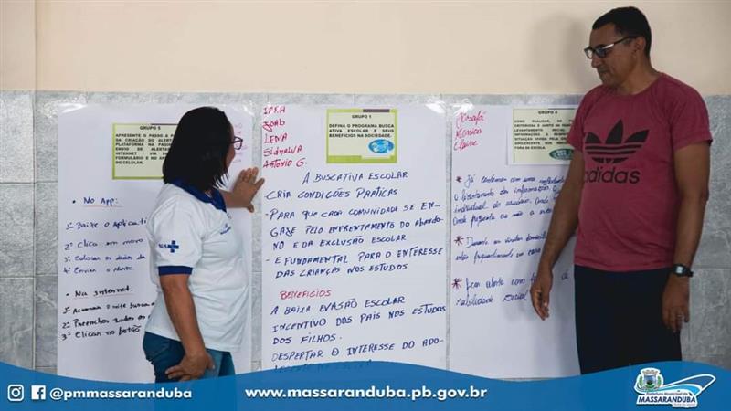 A Secretaria Municipal de Educação, em parceria com a Secretaria Municipal de Saúde, realizaram uma capacitação para os agentes comunitários de saúde, com o objetivo de combater a evasão escolar na Rede Municipal de Ensino de Massaranduba, por meio do Programa Busca Ativa Escolar. Desta forma, foram apresentadas estratégias e o alinhamento de ações para a devida abordagem das famílias, considerando as diferentes causas da exclusão escolar previamente discutidas.