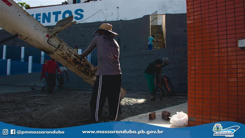 A obra de concretagem e polimento do piso do pátio receberá mais de 280 metros cubicos de concreto em pouco mais de 2.300 metros quadrados. Além da construção do novo piso e a manutenção da rede de esgoto da área, a Prefeitura prepara a entrega da nova sede da Secretaria de Cultura, Comunicação e Esportes, construída no local, com o suporte de um depósito e uma sala destinada a Banda Fanmassa (Fanfarra Municipal).