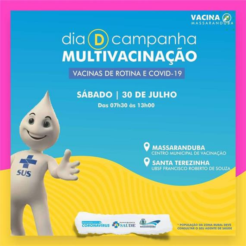 Acontece no próximo sábado, 30, o Dia D da Campanha Multivacinação em Massaranduba e no distrito Santa Terezinha, com a disponibilidade de vacinas de rotina e contra a Covid-19.