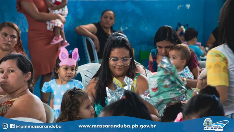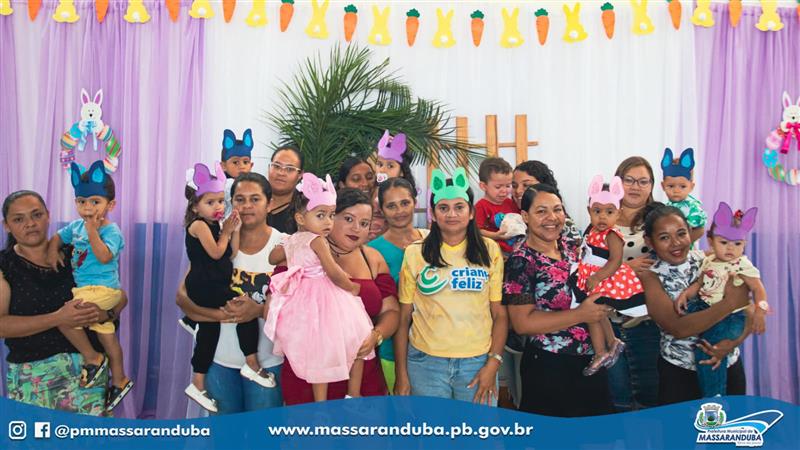 Pais e crianças inscritas no Programa Criança Feliz, participaram na última terça-feira, 04, das festividades alusivas à Páscoa, promovidas pela Secretaria Municipal de Assistência Social. O evento aconteceu na sede do Centro de Referência da Assistência Social (CRAS).